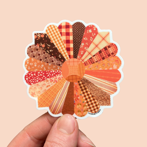 Orange Quilt Flower Vinyl Stickers, Sewing Sticker