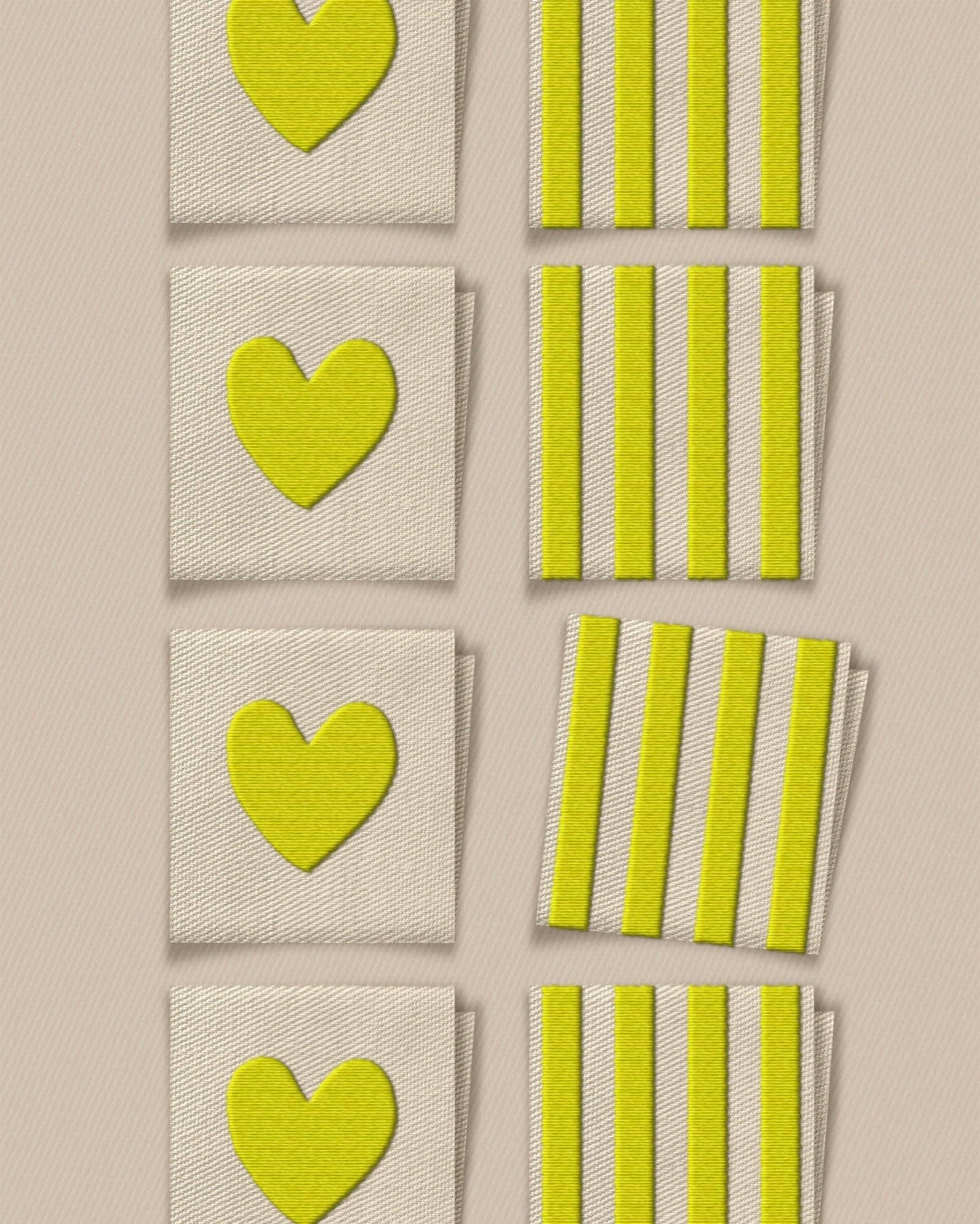 Square labels are 1" square when folded in half and included a seam allowance on top for sewing into the seam of your make.