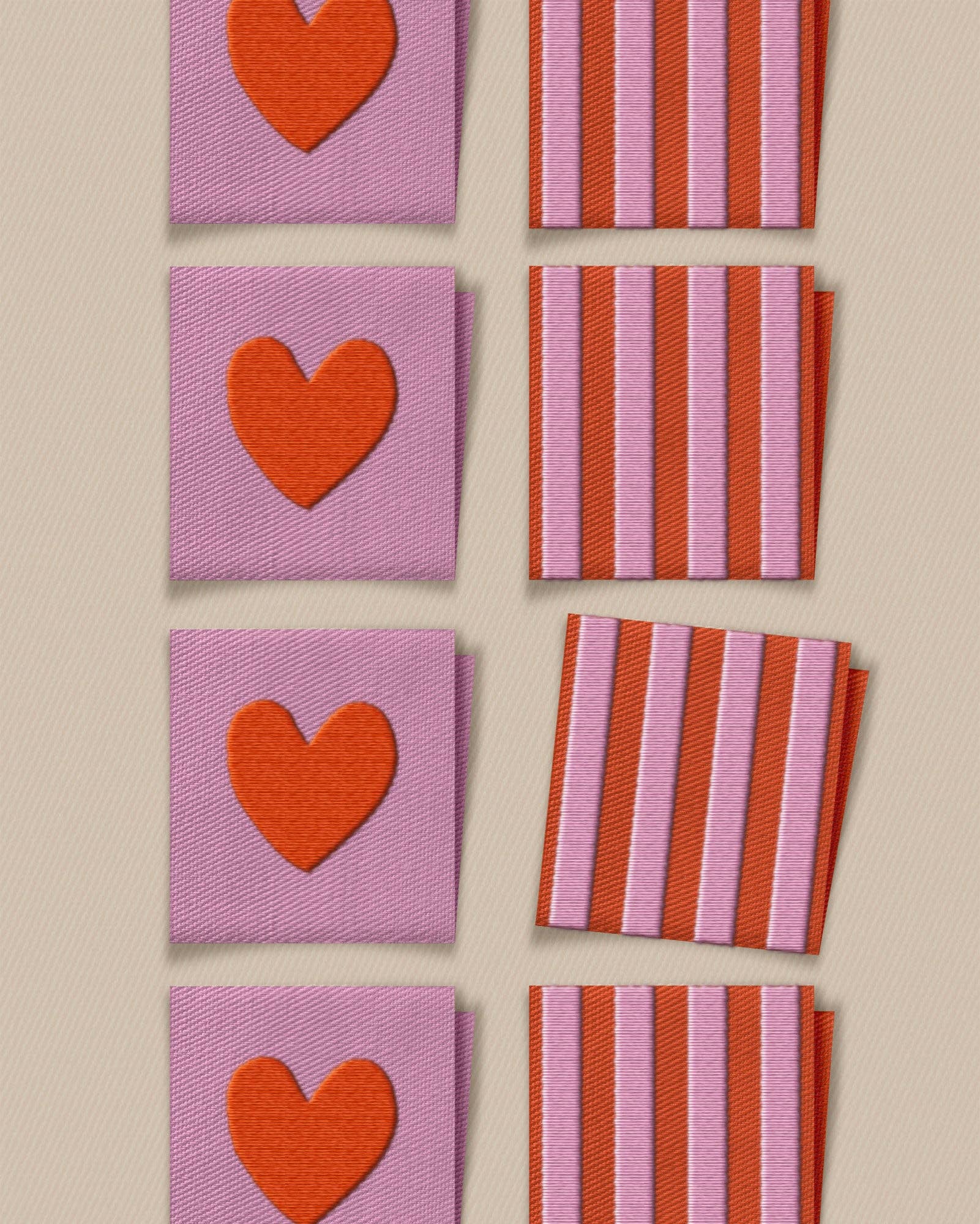 Square labels are 1" square when folded in half and included a seam allowance on top for sewing into the seam of your make.