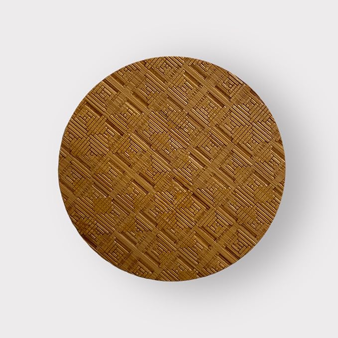 Featuring the LOG CABIN quilt pattern, the round coasters are engraved on bamboo wood. Round coasters measure 3.75” in diameter.