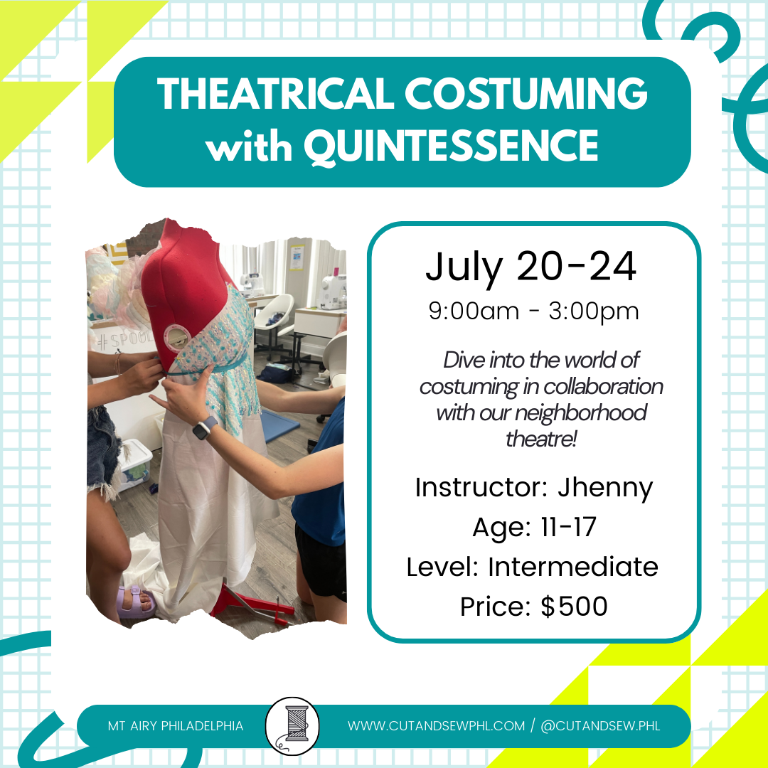 Is your kid curious about what goes on behind the scenes of a stage performance? We are excited to collaborate with our Mt. Airy neighbors at the Quintessence Theatre Group to create costumes for their Teen Summer Shakespearean Production! This camp is perfect for those with a little sewing experience under their belt and are ready to take their skills to the next level. Students will work together to design and create costumes that will be showcased at Quintessence on the last day of camp - Families are welcome to attend!